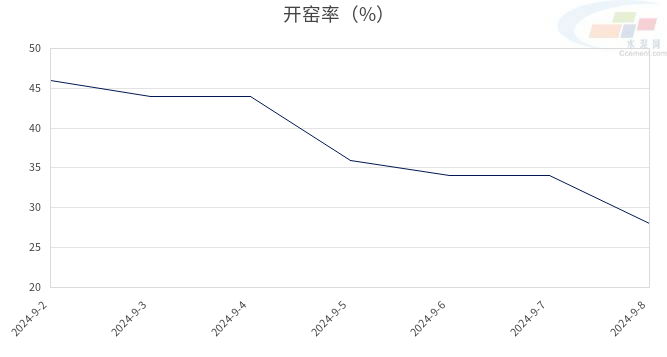 图1:2024年9月2日-2024年9月8日山西省水泥窑每日开窑率走势图
