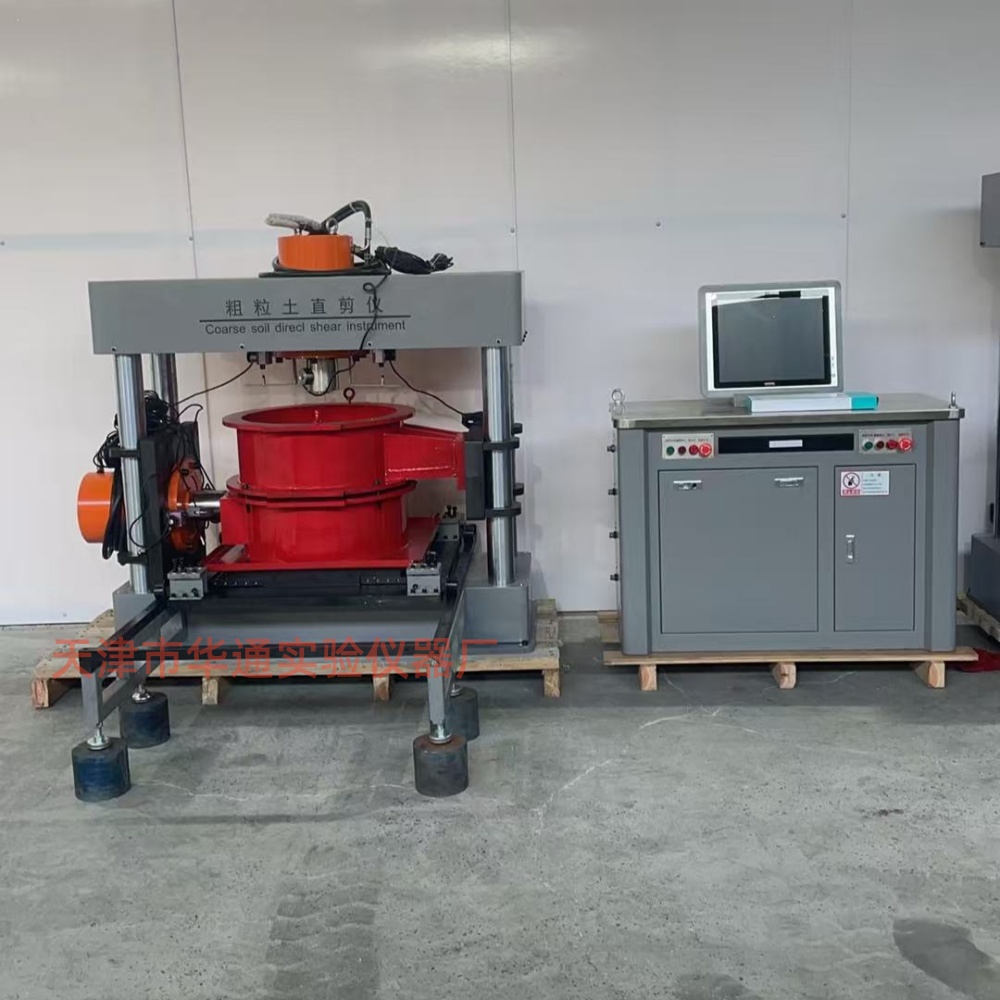 粗粒土直剪试验仪用于测定粗粒土抗剪强度,采用粗粒土试样,在垂直压力下,施加剪切力进行剪切,求破坏时的剪应力和剪切位移。